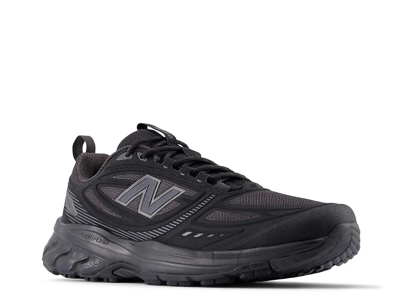 Now enhanced with more upper coverage and durability, the men's 410 v9 running shoe from New Balance is an essential add to your rotation. The re-engineered AT Tread is designed with a specific blend of rubber coverage and lug pattern to balance on and off-road terrain.