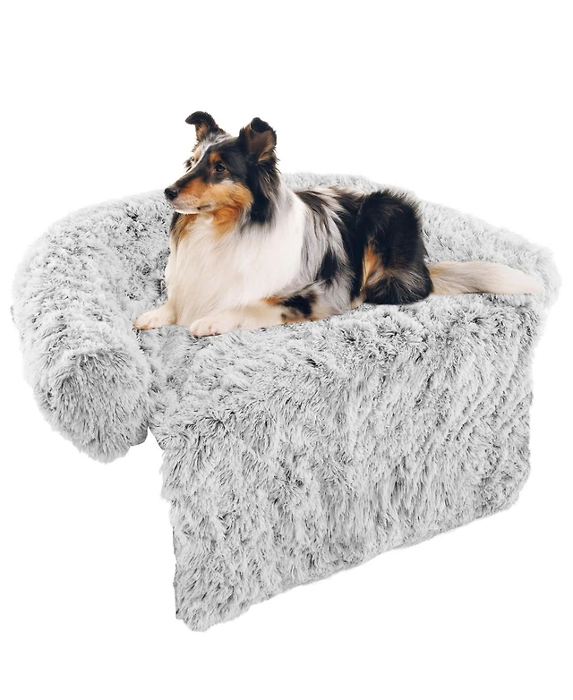 Plush Calming Dog Couch Bed with Anti-Slip Bottom Plush Mat for Small Dogs & Cats