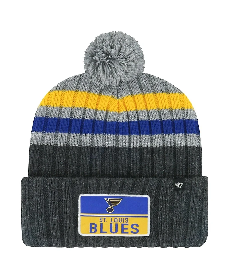 '47 Brand Men's Gray St. Louis Blues Stack Patch Cuffed with Pom Knit Hat