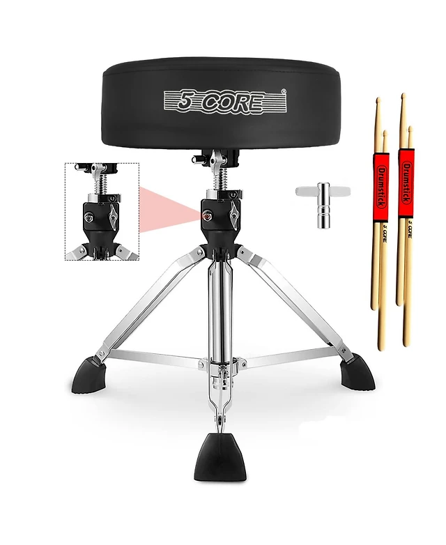 5 Core Drum Throne Comfortable Height Adjustable Stool Thick Padded Seat Professional Heavy Duty Musician Drummer Chair 400 lbs Capacity for Adults An
