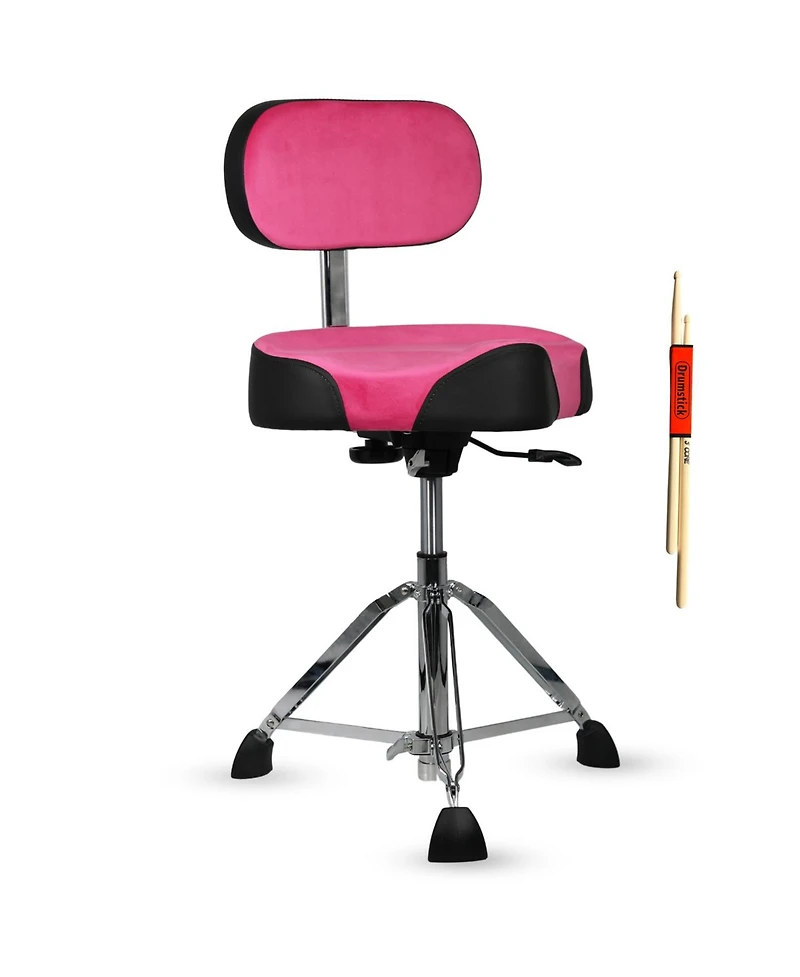 Rust-Resistant Metal Frame - Built with a corrosion-resistant steel base that ensures long-lasting durability and maintains its premium look.Quick-Release Height Lever - The air-lift system includes an easy-access lever for instant height changes without dismounting the seat.Compact and Portable Design - Lightweight yet sturdy, the drum throne is easy to fold and transport, ideal for gigging musicians and studio players.Modern Aesthetic Appeal - The soft velvet finish and sleek saddle profile create a professional stage-ready appearance that matches any setup.Drum Throne Specification:Seat Thickness: 4” Seat Dimension: 17 x 15.5”Load Capacity: 441 LbsMinimum Height: 19”Maximum Height: 25”Material: Iron, Velvet, Abs, Sponge, and Pu LeatherPackage Includes:1x Drum Throne