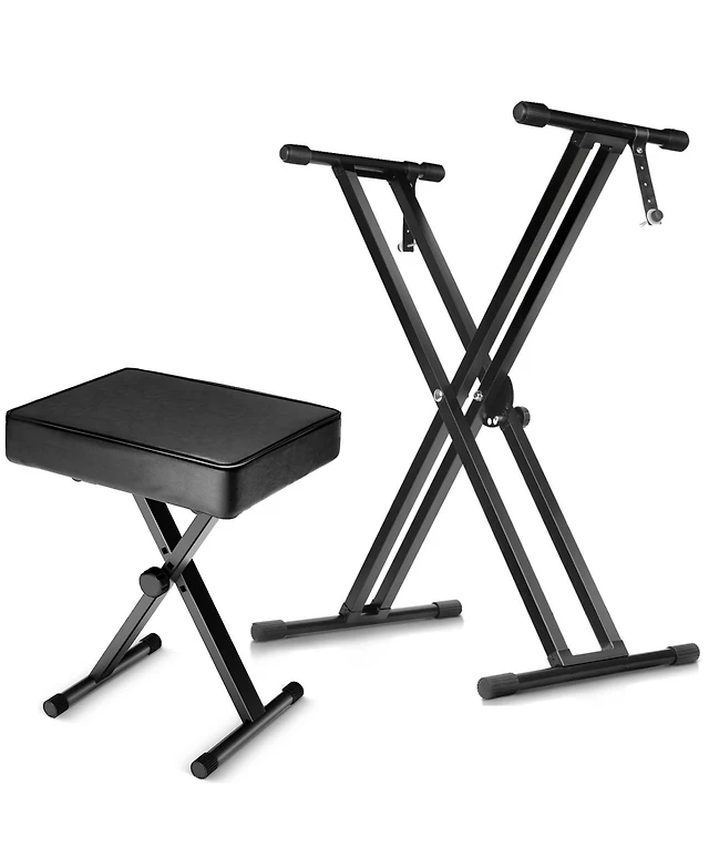 5 Core Keyboard Stand Double X Style Adjustable Piano Riser + Keyboard Piano Bench - Black