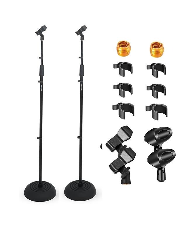 5 Core Mic Stand Floor Pair Adjustable Heavy Weight Microphone Stands Round Base