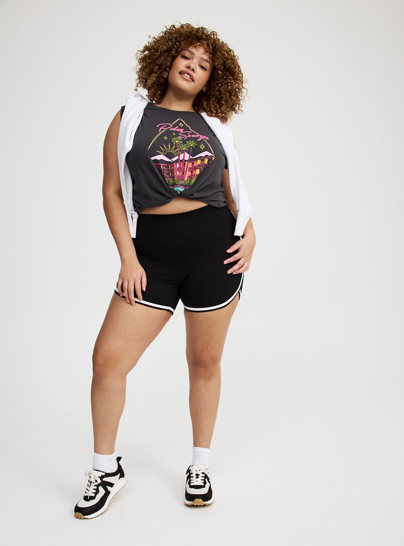 FIT High rise. 2'' Signature Waistband keeps things smooth and won't roll down. 5'' inseam. MATERIALS + CARE Thick cotton-blend fabric that smooths and flatters. 4-way stretch with great recovery. 95% cotton, 5% spandex. Machine wash cold. Dry low. Imported. DETAILS Seamless construction. Opaque (not see-through). Prevents leg chafing. Sporty dolphin hem detail. WHY WE LOVE IT With the same incredible fit as our best-selling leggings, our bike shorts are perfect worn solo or under your fave dress or skirt to give you coverage and prevent chafing.