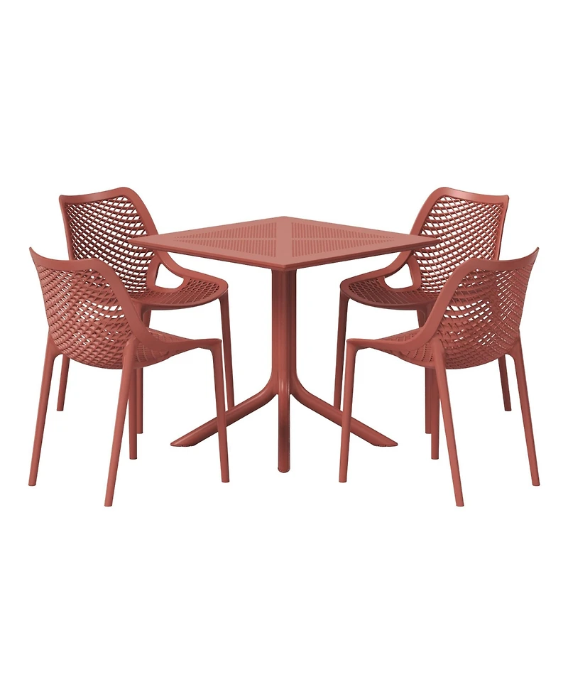5-Piece Modern Square Patio Dining Table Set with Stackable Chairs