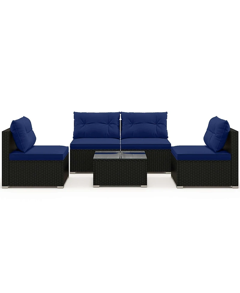 Elevate your outdoor living with our amazing 5-piece patio Pe rattan furniture set! This outdoor conversation set features thick cushions with soft padded sponges, ensuring an incredibly comfortable sitting experience. The accompanying tempered glass coffee table provides an ideal space for items to be conveniently within reach. And that's not all! Plus, all pieces are crafted from fade-resistant and sun-protective Pe rattan, designed for long-lasting use and durability. Besides, the modular design allows you to customize your outdoor space to fit your needs and style!
