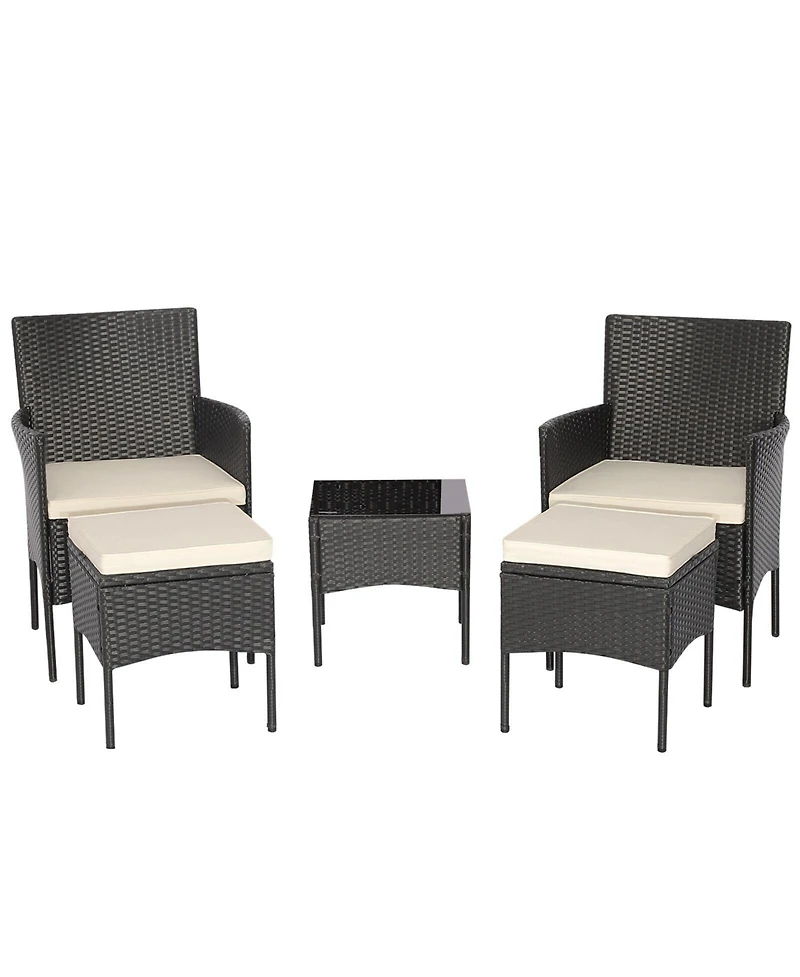 5 Pieces Outdoor Wicker Sofa Set with Coffee Table and 2 Ottomans