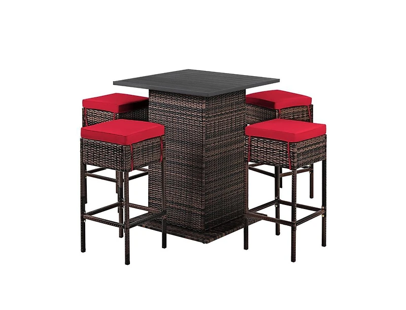 5 Pieces Patio Rattan Bar Table Stool Set Hidden Storage Shelf Cushioned in Bloomington, MN