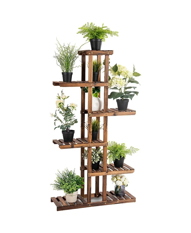 Unho Wooden Plant Stand 6 Tier Bonsai Display Shelf Carbonized Wood for Porch Outdoor
