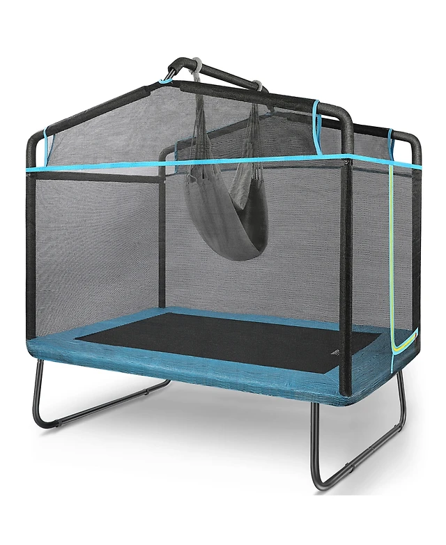 64" Rectangle Trampoline for Kids with Safety Net and Hammock Chair