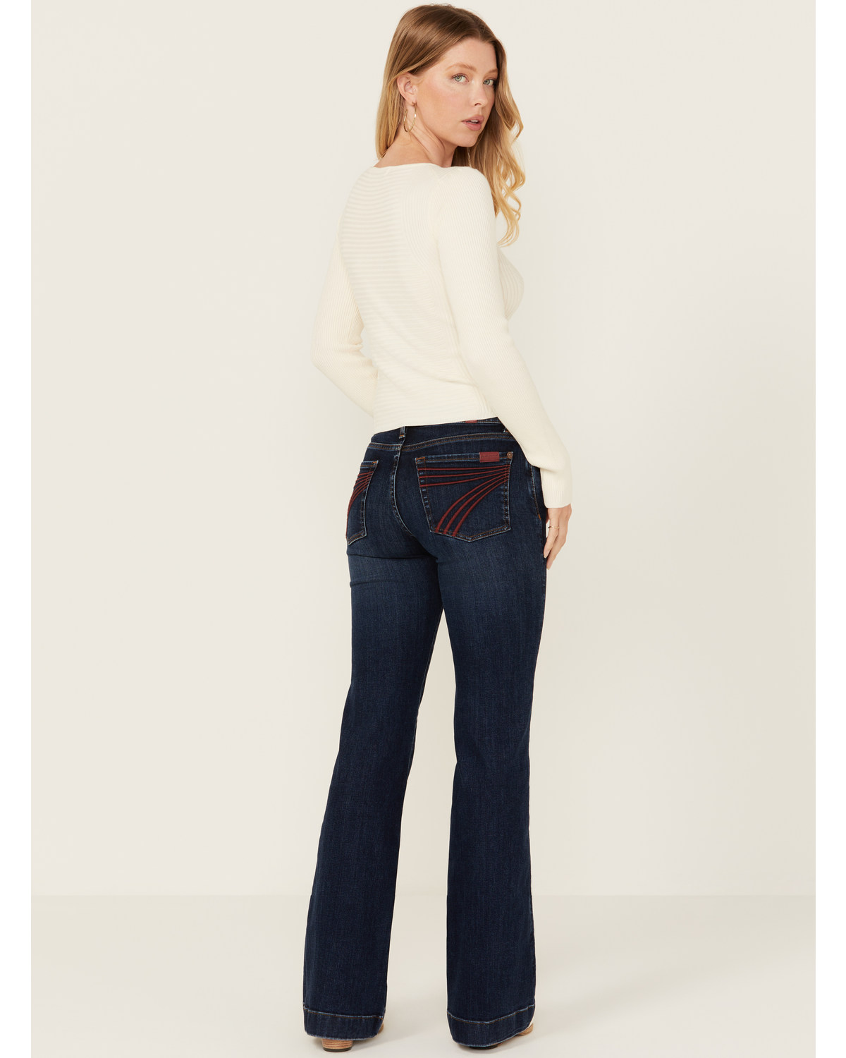 7 For All Mankind Women's Dark Wash Mid Rise Dojo Trouser Flare Jeans