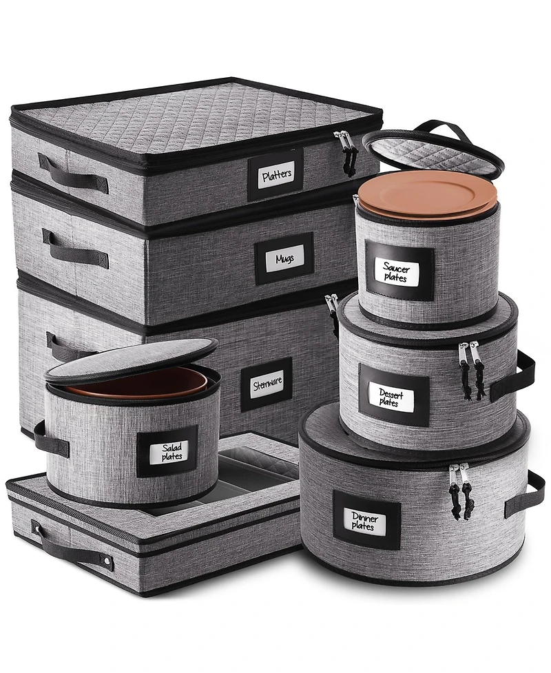 8 Piece Hard Shell Complete Dinnerware Storage set - Holds 12 Servings of Plates, cups, Platters, stemware and cutlery