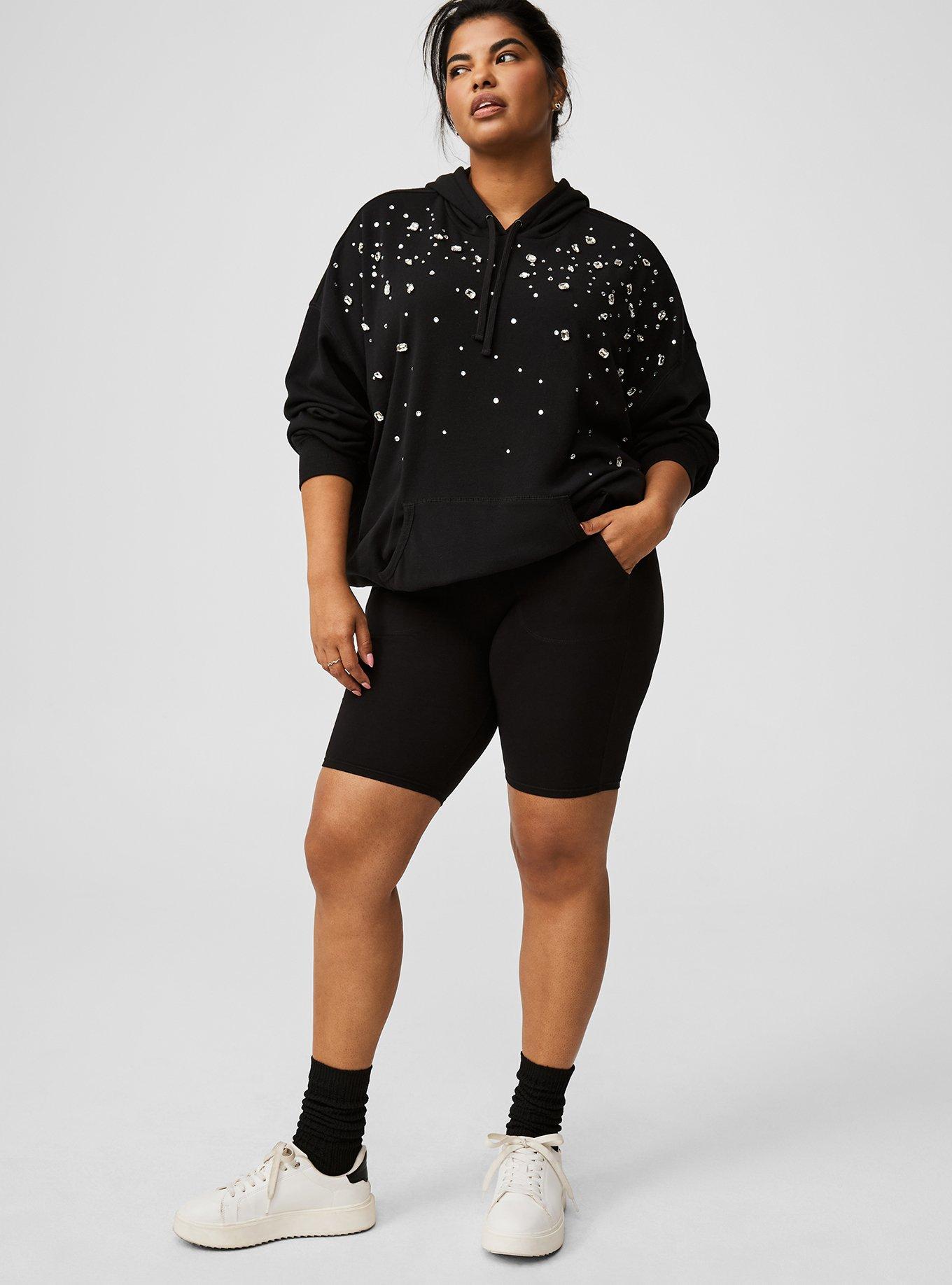 FIT High rise. 2'' Signature Waistband keeps things smooth and won't roll down. 9'' inseam. MATERIALS + CARE Thick cotton-blend fabric that smooths and flatters. 4-way stretch with great recovery. 95% cotton, 5% spandex. Machine wash cold. Dry low. Imported. DETAILS Opaque (not see-through). Prevents leg chafing. Pockets. WHY WE LOVE IT With the same incredible fit as our best-selling leggings, our bike shorts are perfect worn solo or under your fave dress or skirt to give you coverage and prevent chafing.