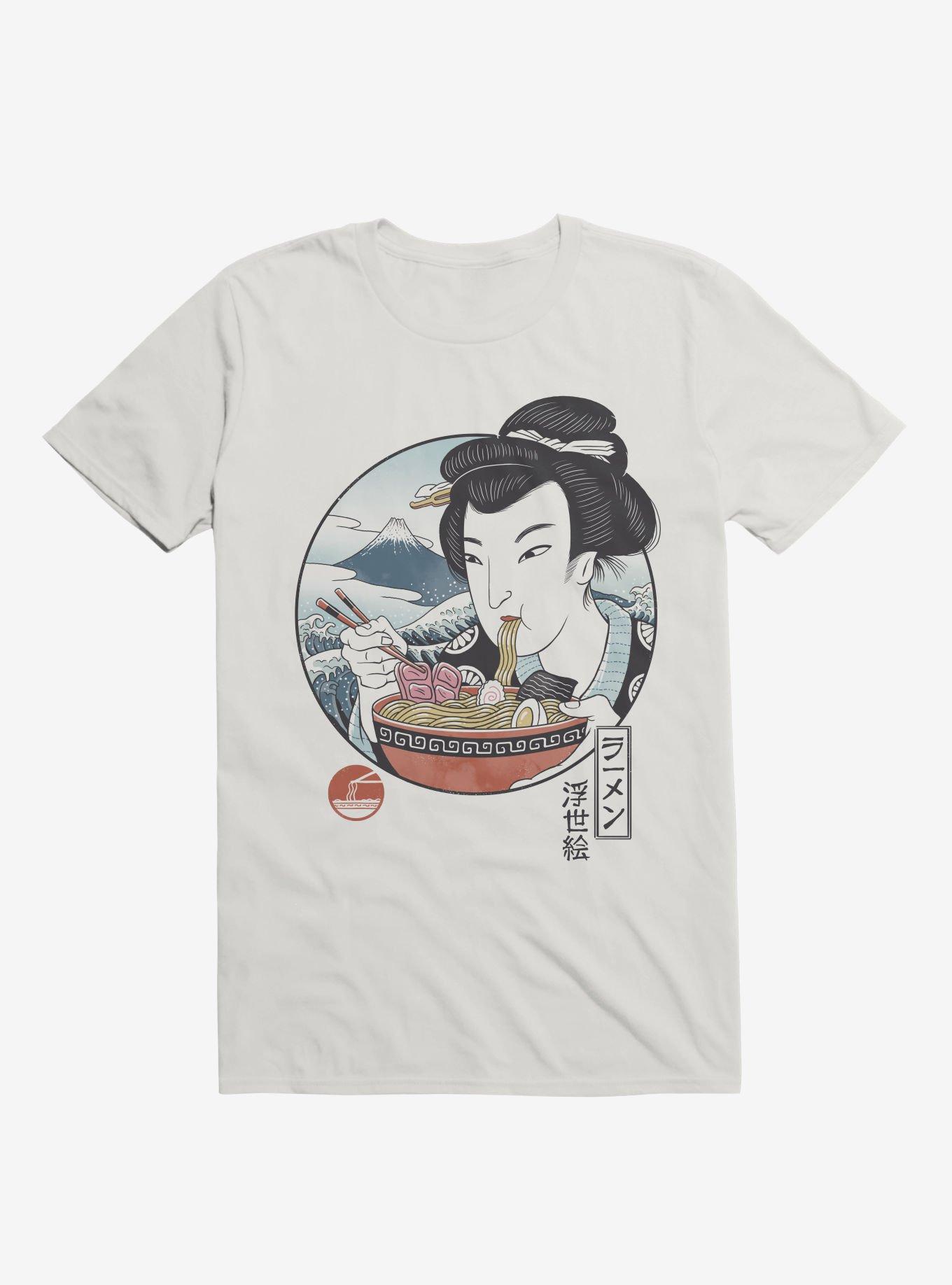 What's for dinner? A taste of Japan! This lightweight white tee features a mouthwatering bowl of ramen. *Slurp*! Officially licensed art from Vincent Trinidad.