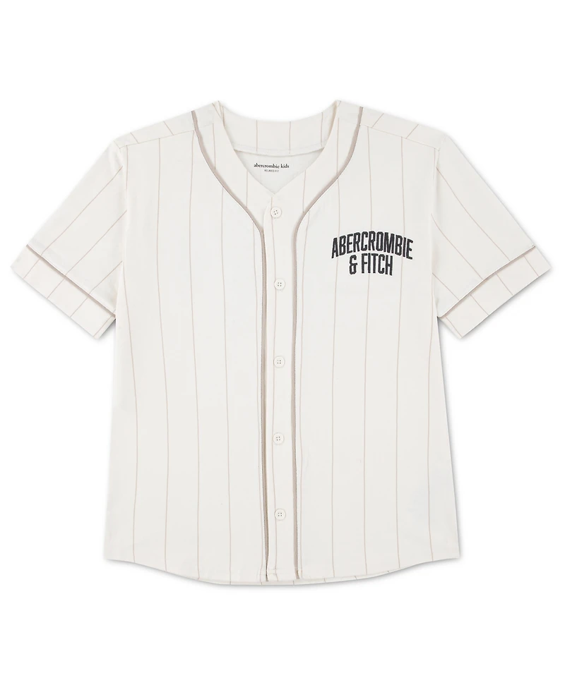 This baseball uniform from abercrombie kids is perfect for fans of the sport. It's made of smooth cotton jersey finished with an allover pinstripe print, features applique detailing, and has a button-front closure for versatile styling.