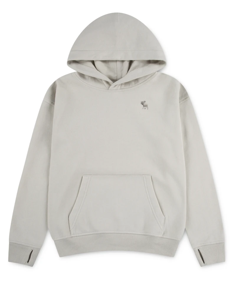 Wrap yourself in comfort with the abercrombie kids Fitch Essential Fleece Pullover Hoodie Soft fleece with polyester keeps you cozy. Ribbed cuffs and hem ensure a snug fit, while the iconic Moose logo adds classic style.