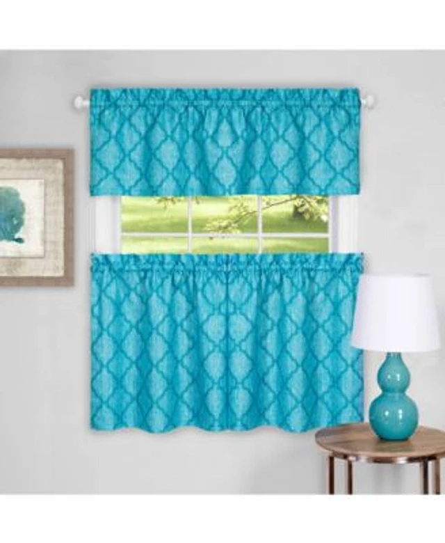 Kate Aurora Pacifico Complete 3 Piece Rod Pocket Embroidered Tier & Valance Kitchen Curtain Set