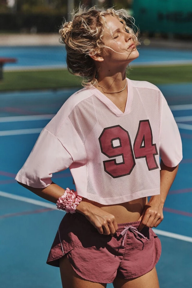 Girls Quick Dry Graphic Mesh Cropped Football Tee