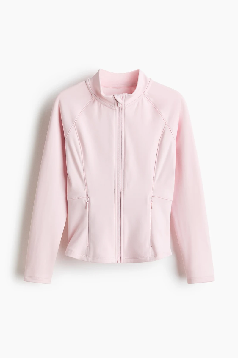 Slim-fit activewear jacket in functional fabric made with DryMove™ to wick away moisture from skin and keep you comfortably dry while moving. Stand-up collar, zipper at front, pockets with zipper, and long raglan sleeves.
