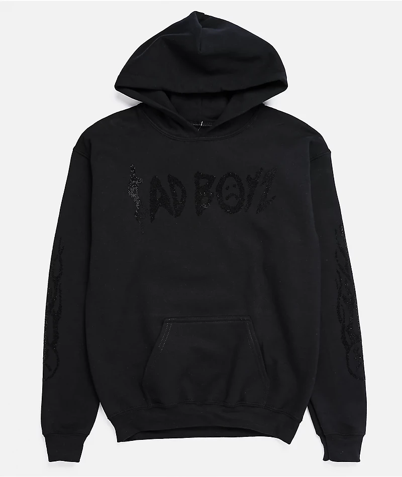 Size: YTH SAD BOYS BLACK FLAME HOOD