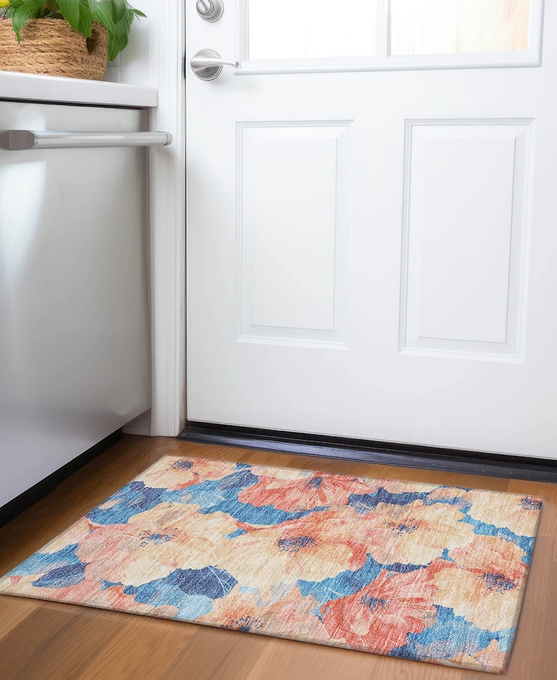 Enrich your decor with the sophisticated design of large florals with shadowy leaves in this rug. The floral pattern offers a lively and look, perfect for homes. Uv stabilized for both indoor and outdoor use, it features ultra-thin construction. This machine-washable rug is family and pet-friendly.