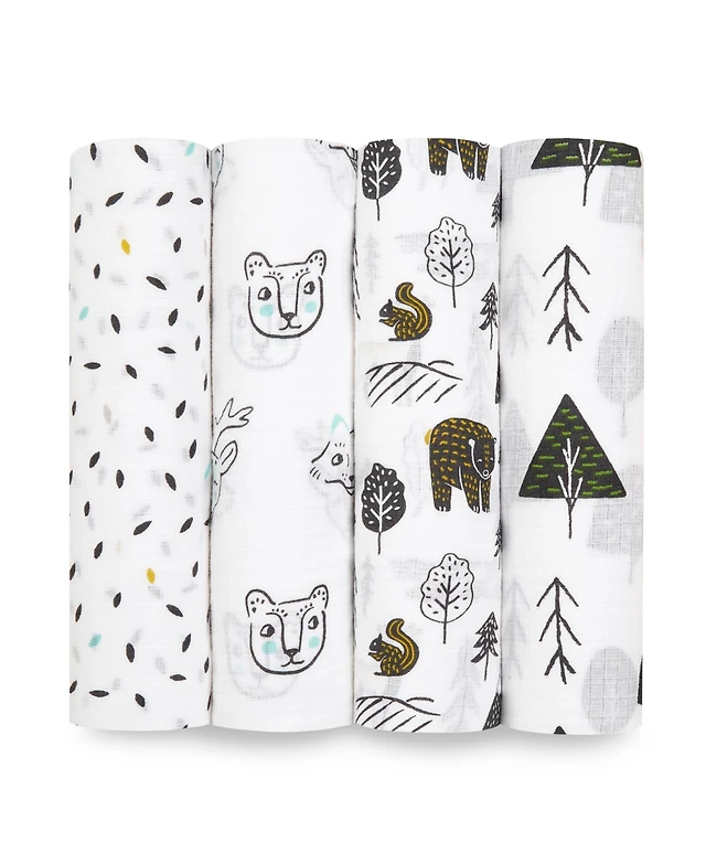 aden by aden + anais Baby Boys or Baby Girls Animal Swaddle Blankets, Pack of 4