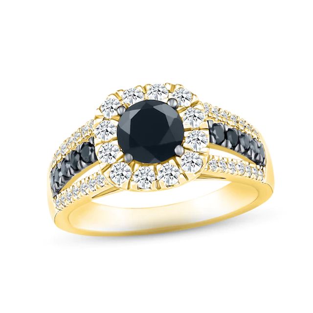 Adore Black & White Diamond Engagement Ring 1-3/8 ct tw Round-cut 10K Yellow Gold