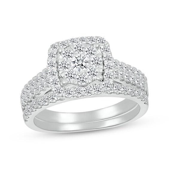 Adore Multi-Diamond Cushion Frame Bridal Set 1 ct tw 10K White Gold
