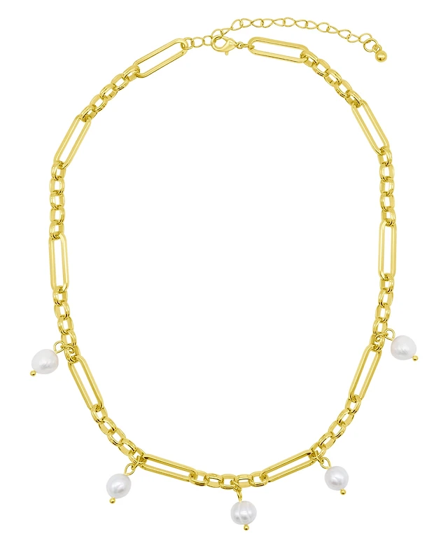Adornia 14K Gold-Plated Adjustable Cultured Freshwater Pearl Mixed Link Chain Necklace
