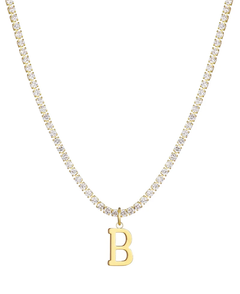 Adornia Gold Crystal Initial Charm Tennis Necklace