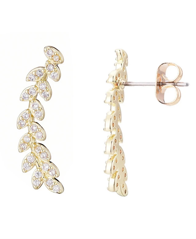 Adornia Gold Cz Curved Leaf Drop Earrings