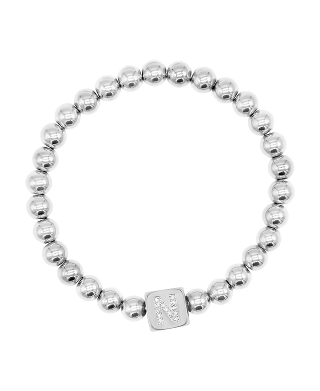 Adornia Silver Crystal Initial Cube Stretch Bracelet