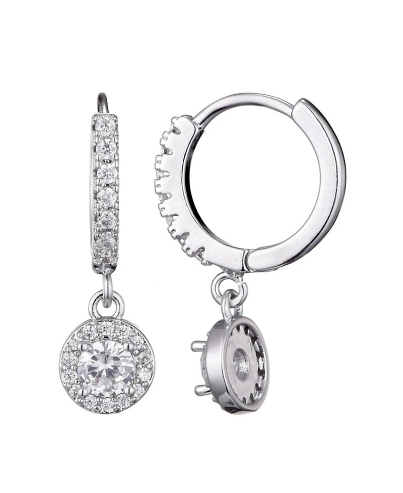 These silver plated huggie hoops feature a delicate drop with a halo of sparkling Cz stones. They're lightweight and comfortable, adding just the right amount of shimmer to your look without feeling heavy. Perfect for everyday wear or dressing up.