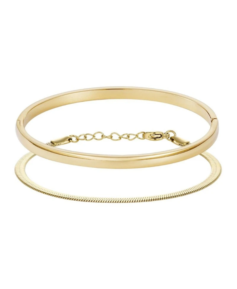 Adornia Tarnish Resistant Gold Herringbone and Cuff Bracelet Set