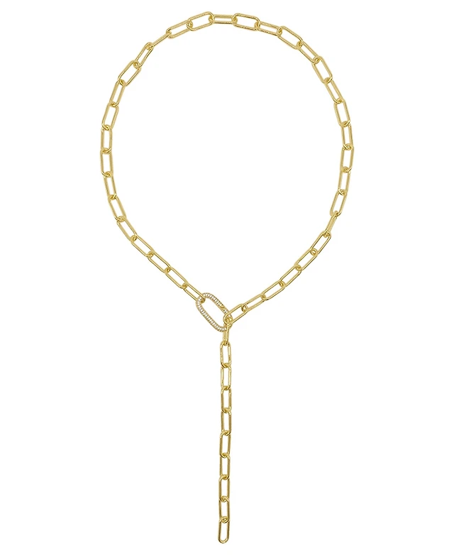 Adornia Silver Crystal Paper Clip Chain Lariat Necklace