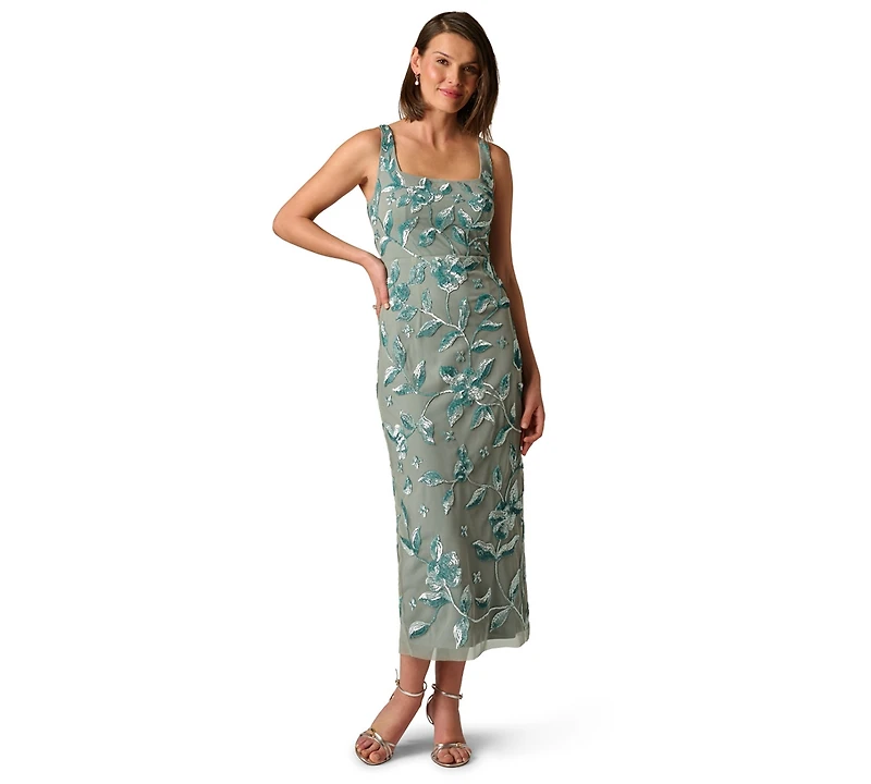 Classic with a fashionable twist, this beautifully beaded dress from Adrianna Papell is designed in a slim-fitting column silhouette.