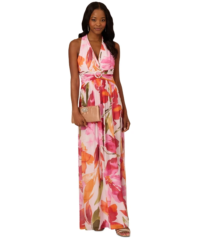 Adrianna Papell Women's Floral Chiffon V-Neck Gown
