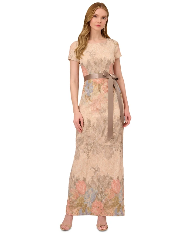 Adrianna Papell Women's Cascading Floral Sheath Gown