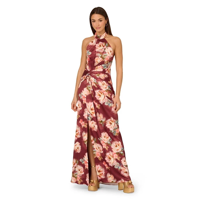Adrianna Women's Folied-Chiffon Halter Gown