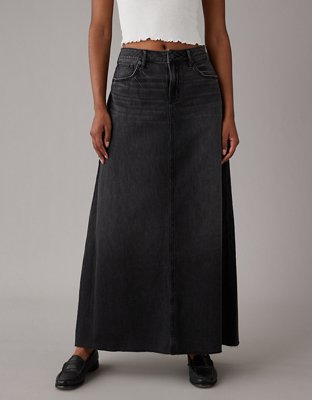 AE Low-Rise A-Line Denim Maxi Skirt