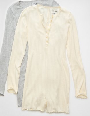 AE Long-Sleeve Henley Lounge Romper