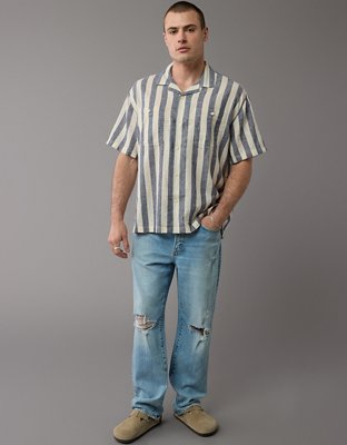 AE Go Big Linen-Blend Oversized Striped Shirt