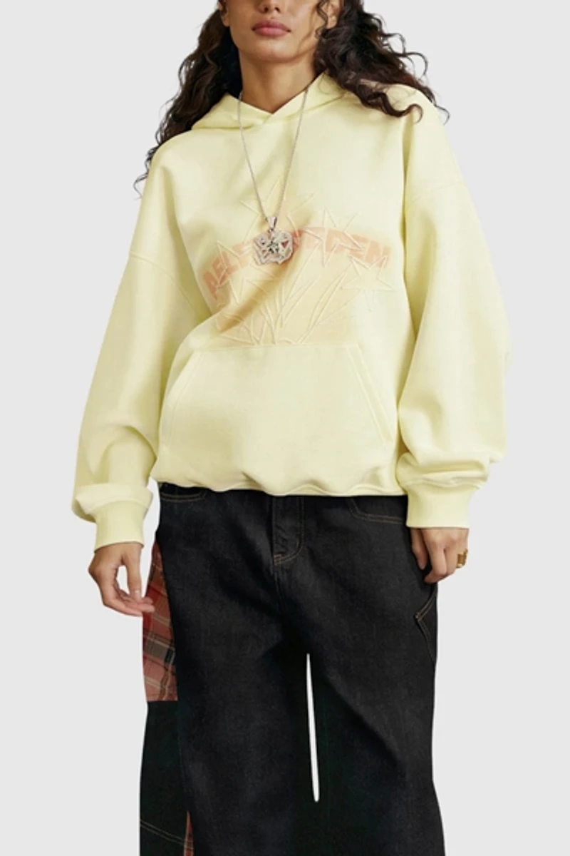 This hoodie features beaded embroidery in a soft pastel hue, adding subtle shine to its Eden Star design. Finished in a relaxed boxy fit, it’s an easy statement layer for everyday wear.