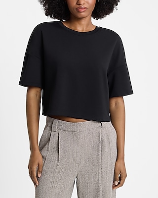 Eyelet Mixed Media Short Sleeve Sweatshirt