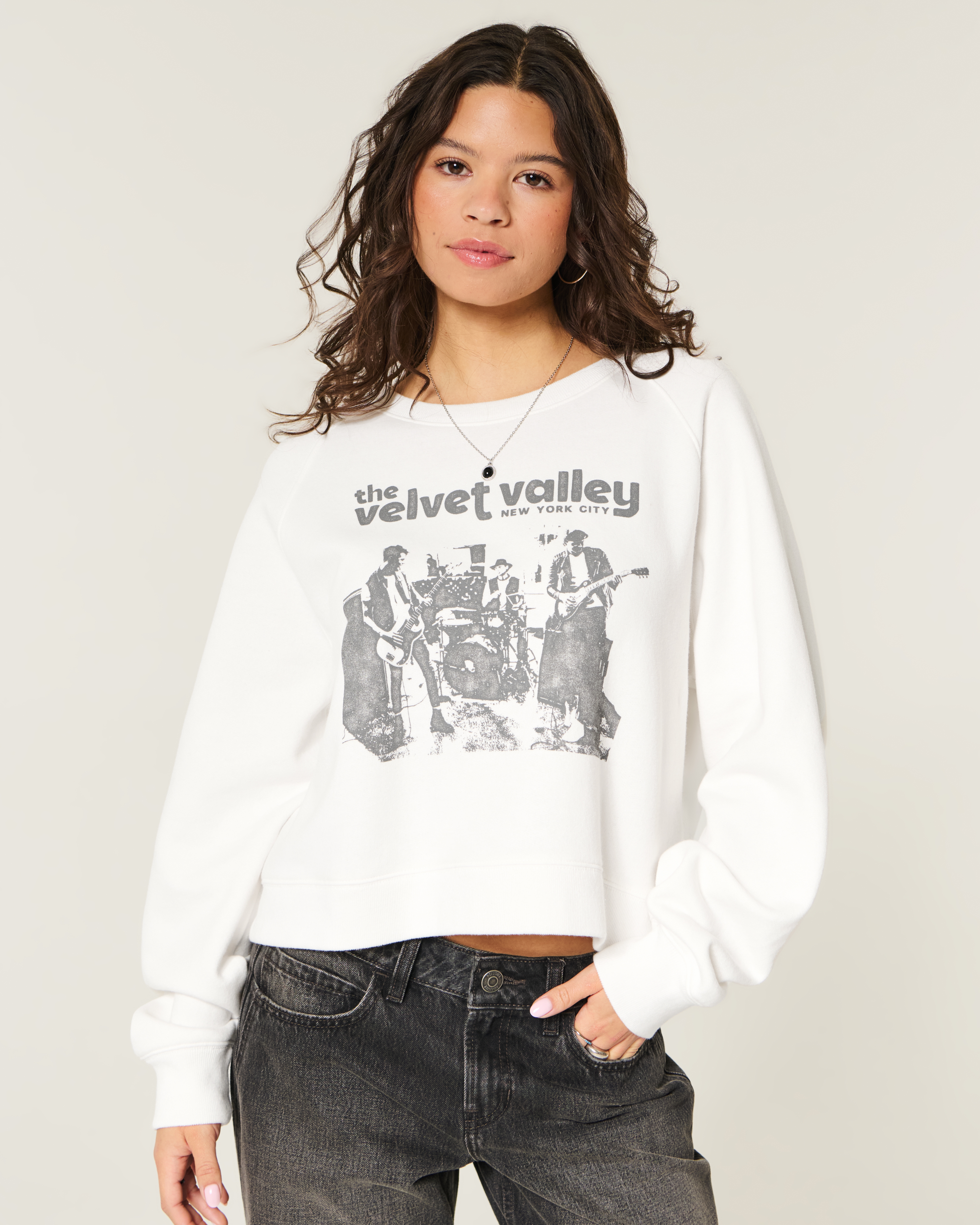 Hollister Feel Good Easy Velvet Valley Graphic Crew Sweatshirt