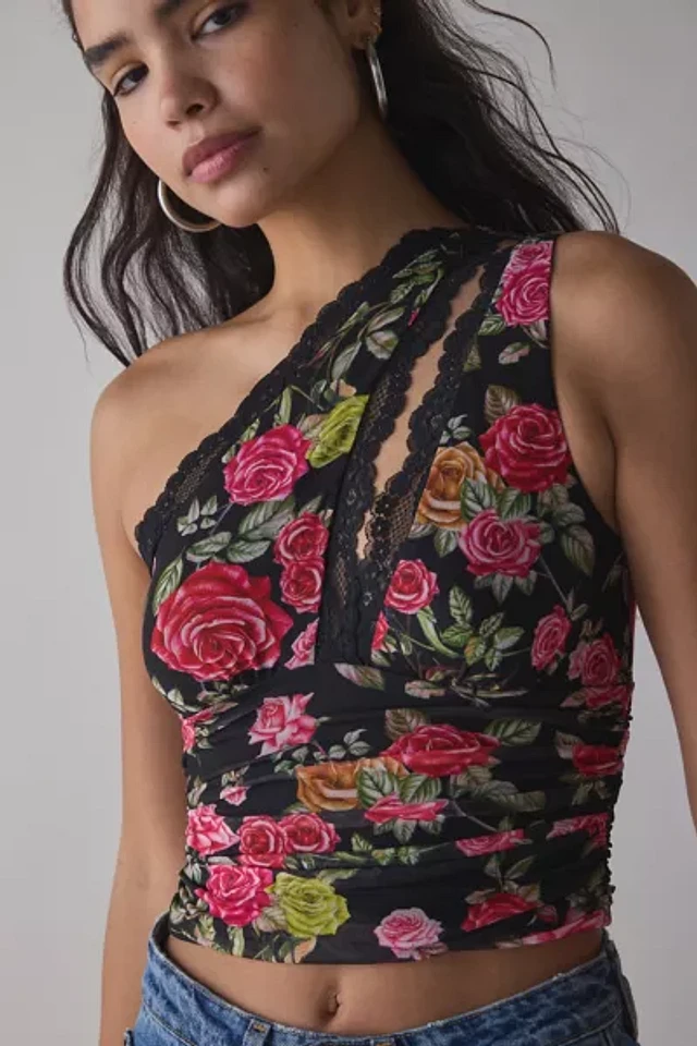 AFRM Delaney Wallpaper Rose One-Shoulder Lace Trim Top