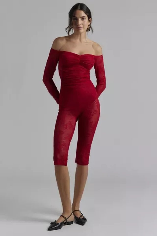 AFRM Fay Polka Dot Mesh Off-The-Shoulder Mini Dress