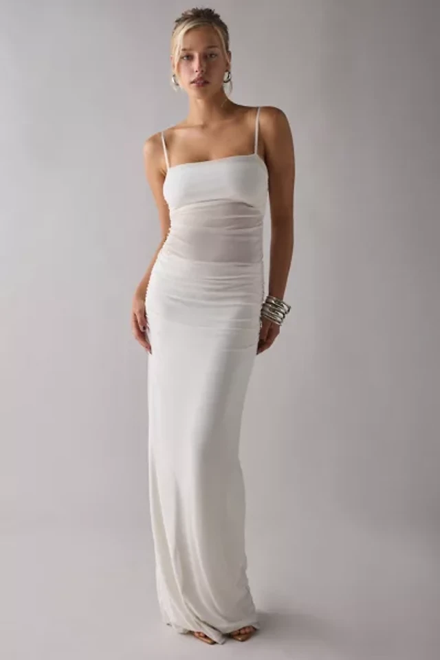 AFRM Jennan Gardenia Ruched Sheer Illusion Mesh Tank Maxi Dress