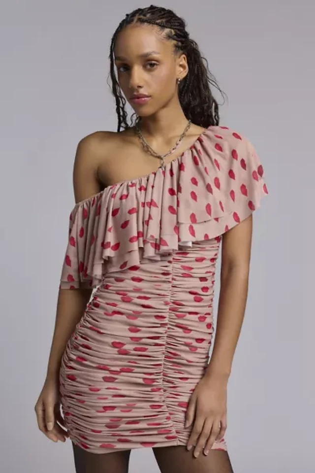 AFRM Vivian Almond Kiss One Shoulder Ruched Mini Dress