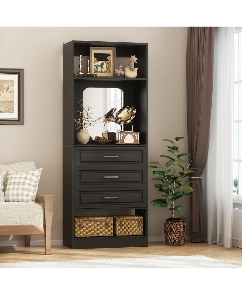 Aheaplus Mdf, Metal, Glass Freestanding Closet System with 3 Drawers, 25'' Drawer Organizer Mirror and Storage Shelves in Bloomington, MN